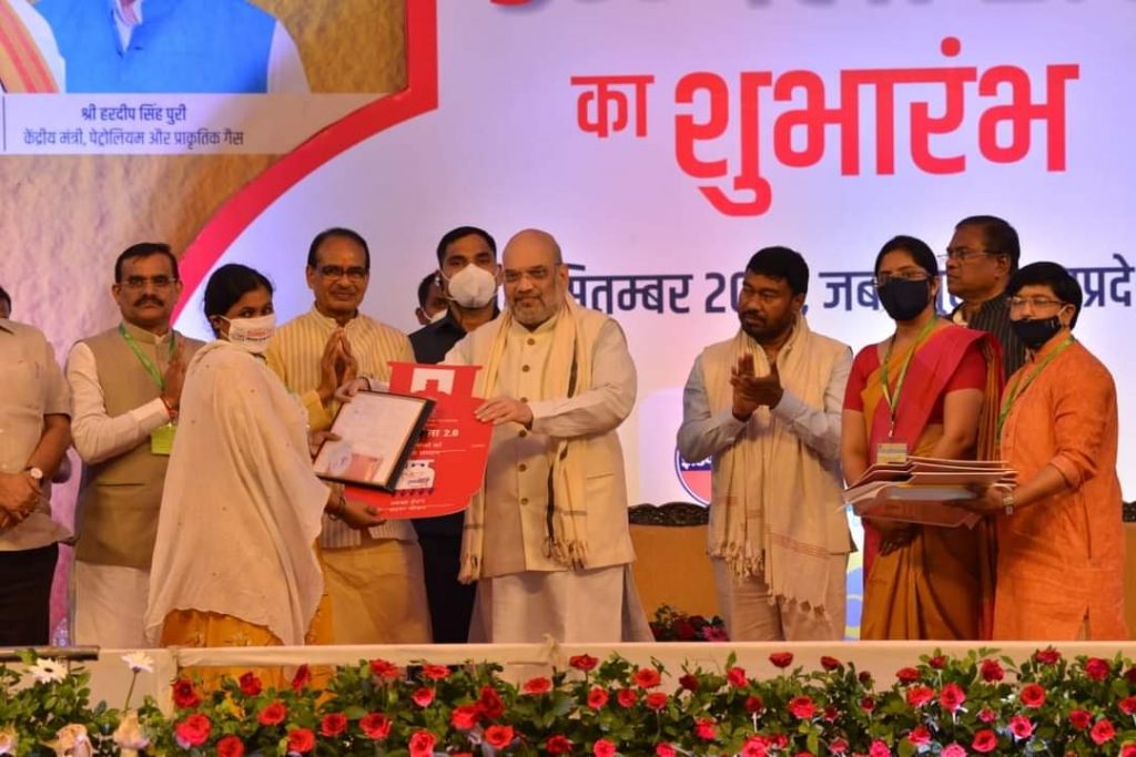 केंद्रीय गृह एवं सहकारिता मंत्री अमित शाह वेटनरी कॉलेज ग्राउण्ड जबलपुर में आयोजित कार्यक्रम में नि:शुल्क गैस कनेक्शन वितरण करने की प्रधानमंत्री उज्जवला योजना 2.0 के शुभारंभ कार्यक्रम में शामिल हुये। केन्द्रीय मंत्री शाह ने अपने उद्बोधन में कहा कि आज प्रधानमंत्री उज्ज्वला योजना के द्वितीय चरण के शुभारंभ के साथ ही मध्यप्रदेश में 5 लाख माताओं को निःशुल्क गैस कनेक्शन वितरण किया जा रहा है। उन्होंने कहा कि इस योजना के तहत ग़रीब महिलाओं के घरों को अब धुंए से मुक्ति मिलेगी। उन्होंने अपने उद्बोधन में कहा कि प्रधानमंत्री नरेन्द्र मोदी के नेतृत्व में देश में विकास की धारा प्रवाहित हो रही है। केन्द्र सरकार देश के गरीब, पिछड़े, आदिवासी एवं दलित वर्ग के कल्याण के लिए सतत् रूप से कार्य कर रही है। केन्द्र सरकार के वर्ष 2014 के प्रथम कार्यकाल से ही ग़रीब कल्याण के लिए बनाई गई योजनाओं को अमलीजामा पहनाया जा रहा है। अमित शाह ने कहा कि 2014 तक लगभग 13 करोड़ धनाढ्य परिवारों के पास गैस कनेक्शन था। गरीब महिलाओं को पारम्परिक तरीक़े से लकड़ी चुन कर चुल्हे पर खाना बनाना पड़ता था, लकडी के धुएं से फेफड़ों एवं आँखों की समस्यायें होती थी। उनके इस दर्द को प्रधानमंत्री श्री नरेन्द्र मोदी ने बख़ूबी समझा और इससे उज्जवला योजना की शुरुआत हुई। लगभग 9 करोड़ गरीब परिवारों के घरों तक नि:शुल्क गैस कनेक्शन प्रदान किये गये।