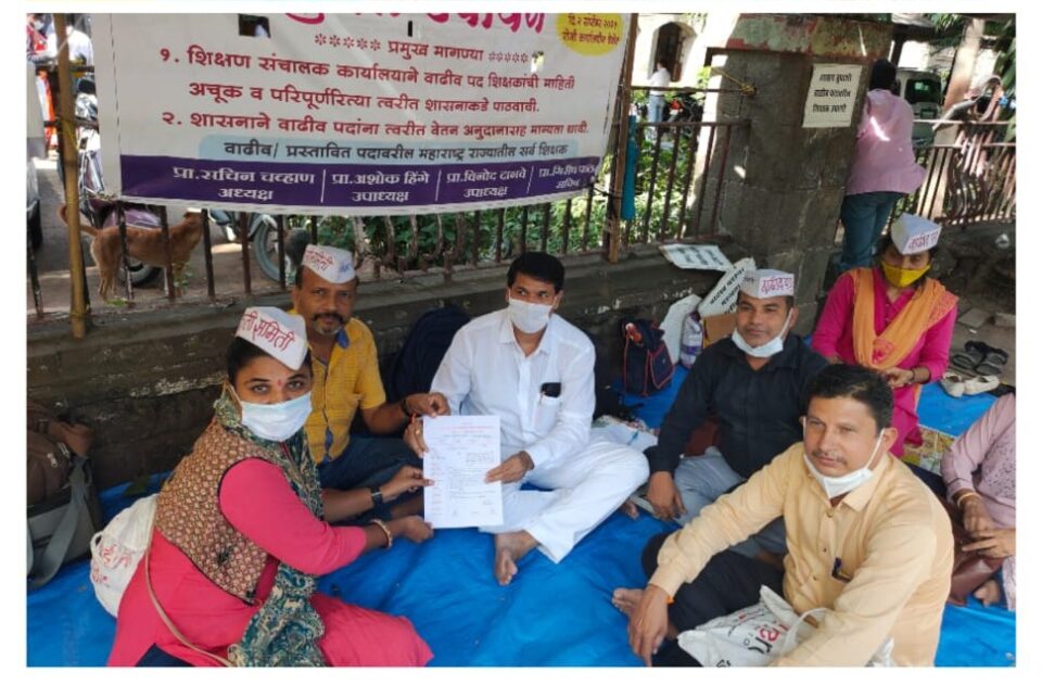 ठाणे : अघोषित प्राथमिक ,माध्यमिक उच्च माध्यमिक शाळांना घोषित करून अनुदान मिळावे तसेच कनिष्ठ महाविद्यालय वाढीव पदांना मंजुरी मिळावी म्हणून अनेक दिवसांपासून शिक्षण आयुक्त पुणे या ठिकाणी राज्यातील शिक्षक शिक्षकेतर बांधवांचे अनेक दिवसांपासून आंदोलन सुरू आहे. या दोन्ही आंदोलनाला महाराष्ट्र राज्य मुख्याध्यापक संघाचे उपाध्यक्ष तथा कोकण विभाग शिक्षक सेनेचे अध्यक्ष ज्ञानेश्वर म्हात्रे व मुंबई उत्तर विभाग शिक्षक सेनेचे अध्यक्ष श्री नरेंद्र शिंदे यांनी भेट देऊन आंदोलनकर्त्या शिक्षकांशी चर्चा केली तसेच शिक्षण संचालक कार्यालयातील अधिकाऱ्यांची दोन्ही विषय मार्गी लागण्यासाठी भेट घेतली. तसेच शिक्षण क्षेत्रातील हे सर्व प्रश्न सुटावेत म्हणून ज्ञानेश्वर म्हात्रे हे माननीय मुख्यमंत्री उद्धवजी ठाकरे साहेब यांची भेट घेणार आहेत ,त्या भेटीमध्ये या प्रश्नांविषयी मुख्यमंत्री साहेबांशी बोलणार आहेत.अशी माहिती–विष्णू विशे संपर्कप्रमुख ठाणे जिल्हा माध्यमिक शिक्षक सेना यांनी आमचे प्रतिनिधि डॉ.मनिलाल शिंपी यांच्याशी बोलताना दिली.