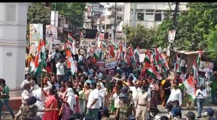 जबलपुर में उत्तर मध्य विधानसभा क्षेत्र के विधायक विनय सक्सेना के नेतृत्व में एक जन अधिकार पदयात्रा निकाली गई जिसमें सैकड़ों की संख्या में कांग्रेसी कार्यकर्ता मौजूद रहे कांग्रेस की एक जन अधिकार यात्रा में कांग्रेस के वरिष्ठ नेता सज्जन सिंह वर्मा भी शामिल हुए इस मौके पर सज्जन सिंह वर्मा ने जमकर प्रदेश सरकार और केंद्र सरकार पर निशाना साधा सज्जन सिंह वर्मा का कहना है कि जब से देश में भारतीय जनता पार्टी की सरकार आई है तब से ही पूरे देश में महंगाई और बेरोजगारी अपने चरम सीमा पर पहुंच चुकी है जिसके बाद भी ना तो केंद्र सरकार द्वारा और ना ही प्रदेश सरकार द्वारा आम नागरिकों को इस महंगाई से राहत नहीं दी जा रही है जिसके चलते आम आदमी का गुजारा मुश्किल हो चुका है केंद्र सरकार द्वारा किसी भी प्रकार की राहत महंगाई से आम आदमी को नहीं दी जा रही है ।