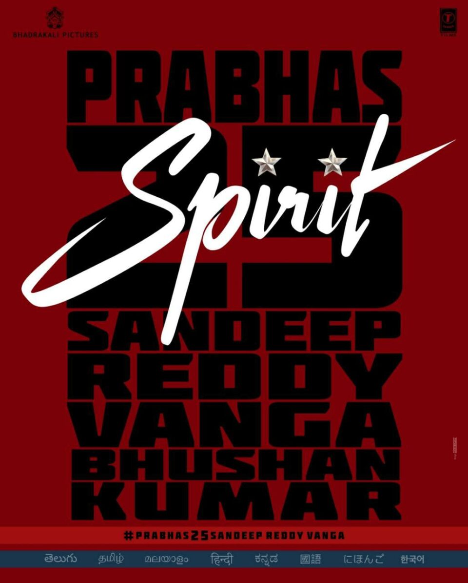 Home » प्रभास की 25वीं फिल्म ‘स्पिरिट’ को डायरेक्ट करेंगे संदीप रेड्डी वांगा, निर्माता होंगे भूषण कुमार