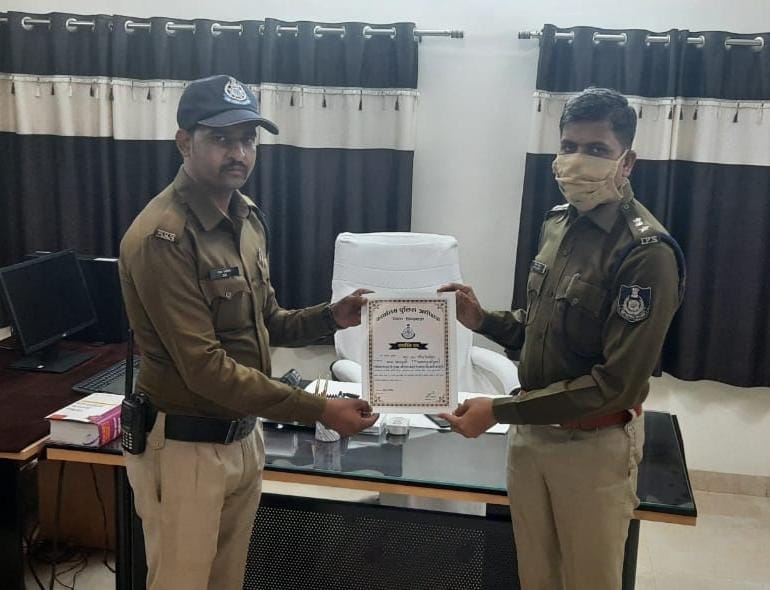 छिंदवाड़ा : छिंदवाड़ा के कोतवाली में पदस्त आरक्षक गौरव ने अदम्य साहस और शौर्य का परिचय देते हुए मानसिक रूप से विक्षिप्त एक युवक के प्राण बचाये विक्षिप्त युवक जिला अस्पताल की ऊंची इमारत में चढ़कर कूदने का प्रयास कर रहा था सही समय पर कोतवाली में पदस्त आरक्षक गौरव ने अपने प्राणों की चिंता किए बिना अपनी सूझबूझ एवं साहस के दम पर युवक को बचाया इतना ही नही आरक्षक गौरव पर इमारत की मुंडेर पर विक्षिप्त युवक ने कूदते समय गौरव पर हमला करते हुए गौरव को भी साथ मे लेकर नीचे कूदने का प्रयास किया पूरा माजरा शोशल मीडिया पर वायरल होते ही आरक्षक गौरव की जमकर सरहाना हुई फलस्वरूप छिंदवाड़ा एसपी विवेक अग्रवाल द्वारा आरक्षक गौरव का सम्मान किया गया एवं कोतवाली स्टॉफ सहित समाजसेवियों ने गौरव के उज्वल भविष्य की कामना की