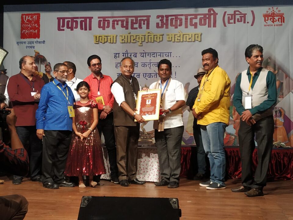 मुंबई (गुरुदत्त वाकदेकर) : एकता कल्चरल अकादमीचा ३३वा एकता सांस्कृतिक महोत्सव मुंबई मराठी साहित्य संघ, गिरगाव येथे दणक्यात साजरा झाला. या समारंभात सुप्रसिद्ध सिने-नाट्य अभिनेते विजय कदम यांना विशेष एकता कला गौरव अर्थात जीवन गौरव पुरस्काराने सन्मानित करण्यात आले. आपल्या सत्काराला उत्तर देताना त्यांचे डोळे भरून आले होते. सगळ्याच गुरूजनांची आठवण काढताना आज विजय कदम म्हणून ज्याला तुम्ही ओळखता ती ओळख ह्या दिग्गजांनी मिळवून दिली, हे अगदी नम्रपणे मान्य करतात. मी फक्त पालखीचा भोई आहे, हे त्यांचेच शब्दच सारं काही सांगत होते. माणसाने जमिनीवरच राहायचं, तरच यशस्वी होता येतं असे प्रतिपादन त्यांनी केले.