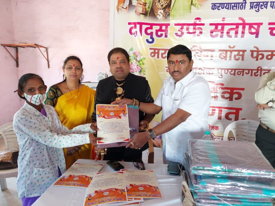 सदर कार्यक्रम हा समाज कल्याण न्यास महाराष्ट्र राज्य व शशिकला महिला सामाजिक शैक्षणिक सेवाभावी संस्था नाशिक यांच्या संयुक्त विद्यमाने आयोजित करण्यात आला होता. या कार्यक्रमाची शोभा वाढविण्यासाठी महाराष्ट्राचे लाडके गायक तथा बिग बॉस फेम श्री संतोष (दादुस) चौधरी यांची खास उपस्थिती राहिल्यामुळे सर्व आशा सेविका, महिला वर्ग महिला कामगार वर्ग , शालेय , कॉलेज विद्यार्थिनी यांनी ही सहभाग नोंदवून महाराष्ट्राचे लाडके गायक श्री संतोष चौधरी यांच्यासोबत गान्यासह नृत्याचा आनंद घेतला मात्र कोरानाचे नियम पाळून सोशल डिस्ट्रक्शनचे पालन करुन ३०/४० महिलांचा ग्रुप करून सदरील कार्यक्रम यशस्वीरित्या पार पाडण्यात आले असे आयोजक डॉक्टर श्री.सोन्या काशिनाथ पाटील व सौ तनुजा (घोलप) भोईर यांनी प्रत्यक्ष दैनिक स्वराज्य तोरणशी बोलताना सांगितले, हा संपूर्ण कार्यक्रम यशस्वी करण्यासाठी समाज कल्याण न्यास महाराष्ट्र राज्य व शशिकला महिला सामाजिक शैक्षणिक सेवाभावी संस्था नाशिक चे सर्व पदाधिकारी व कार्यकर्ते यांनी विशेष मेहनत घेतली…
