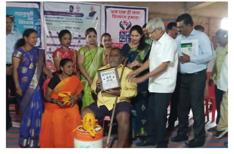 भिवंडी : आदरणीय केंद्रीय पंचायती राज राज्यमंत्री मा.ना. श्री कपिलजी पाटील साहेब ह्यांच्या माध्यमातून केंद्र शासनाच्या एडीप योजनेअंतर्गत दिव्यांग बंधू भगिनींसाठी साहाय्यभूत मोफत साधने वाटप कार्यक्रम मोठ्या उत्साहपूर्ण वातावरणात नुकताच संपन्न झाला. ह्या योजनेचा मुरबाड, शहापूर, व भिवंडी तालुक्यातील ४०० हुन अधिक लाभार्थ्यांना खालील मान्यवरांच्या हस्ते साधने वाटप करण्यात आली सदर प्रसंगी माजी. आमदार श्री.दिगम्बरजी विशे, सभापती महिला व बालकल्याण समिती जिल्हा परिषद ठाणे सौ. श्रेया श्रीकांत गायकर, मुरबाड पंचायत समिती सभापती सौ.स्वराताई चौधरी, उपसभापती सौ. स्नेहा धनगर , मा.उपसभापती श्री. दीपक भाऊ खाटेघरे, भाजपा जेष्ठ नेते श्री.महेंद्रजी पवार,श्री. लियाकत शेख, गटविकास अधिकारी श्री. अवचार , नगरपंचायत चे सी.इ.ओ. श्री.कंकाळ , मा. नगराध्यक्ष किसनजी कथोरे,श्री.समीर भाऊ बांगर, श्री. प्रकाशजी पवार , प्रकल्प अधिकारी श्रीमती लांगुटे , ह्यावेळी मला उपस्थित राहण्याची संधी मिळाली*.हि साधने मिळवून देण्यासाठी खास करून आमचे मित्र शरद पाटील ह्यांनी विशेष मेहनत घेतली.सदरचे साहित्य मिळाल्यानंतर सर्वांनी आदरणीय केंद्रीय पंचायती राज्यमंत्री महोदयांचे आभार मानले।