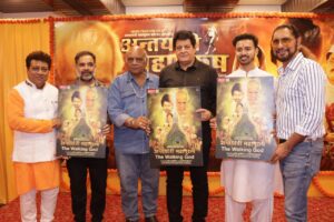 मुम्बई। दिगंबर संत आचार्य श्री विद्यासागर जी महाराज के जीवन यात्रा पर बनी बायोपिक ‘अन्तर्यात्री महापुरुष – द वॉकिंग गॉड’ का म्यूजिक और ट्रेलर एक साथ रविवार 5 जून 2022 को माहेश्वरी हॉल अंधेरी पश्चिम में रिलीज किया गया। उसी अवसर पर विशेष अतिथि के रूप में प्रभात जैन, किरीट जैन, विधि जैन, सुधीर जैन, अशोक पंचरत्न, अभिनेता गजेंद्र चौहान, कृष्णा भट्ट, विवेक मिश्रा, हार्दिक मिश्रा, विकी हाड़ा उपस्थित रहे।