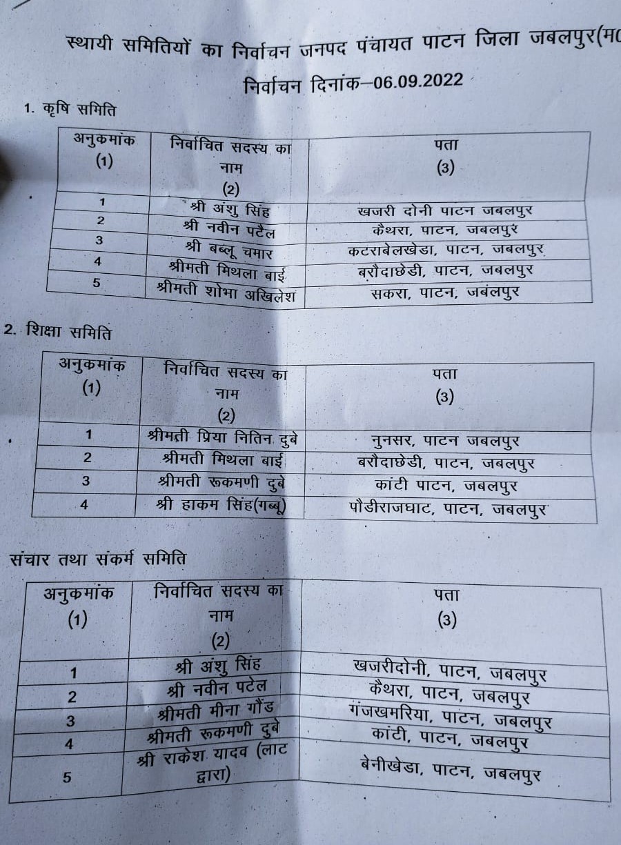 जनपद पंचायत पाटन में आज समितियों का गठन किया गया जिसमें 8 में से 7 समितियों पर भाजपा समर्थित सदस्यों का परचम लहराया है।