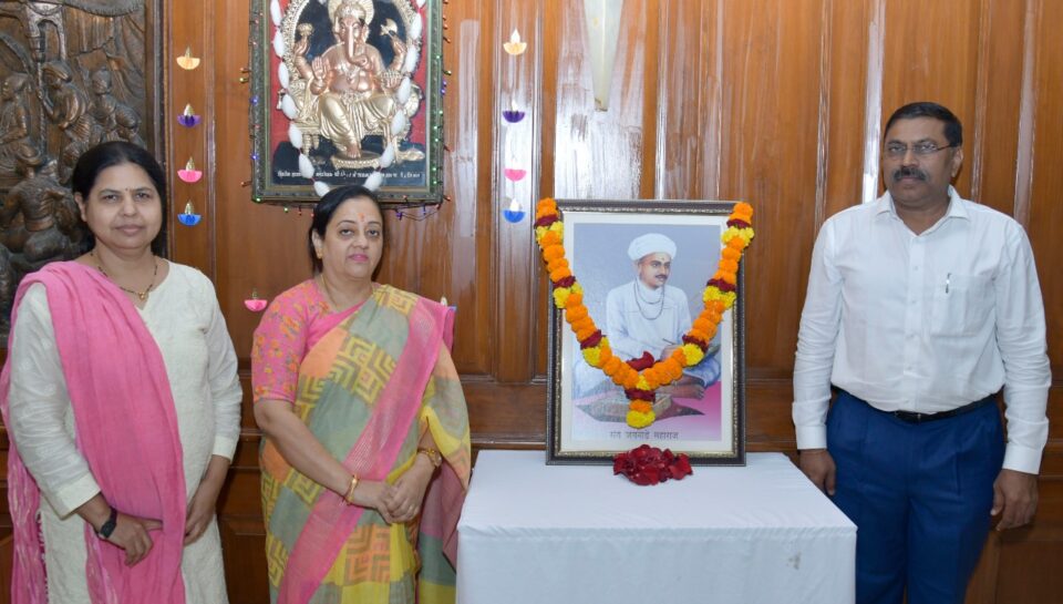 मुंबई (गुरुदत्त वाकदेकर) : संत जगनाडे महाराज यांच्या जयंतीनिमित्त महापौर दालनातील त्यांच्या प्रतिमेस उपआयुक्त (विशेष अभियांत्रिकी) चक्रधर कांडलकर यांनी पुष्पहार अर्पण करुन आज (दिनांक ०८ डिसेंबर, २०२२) अभिवादन केले.