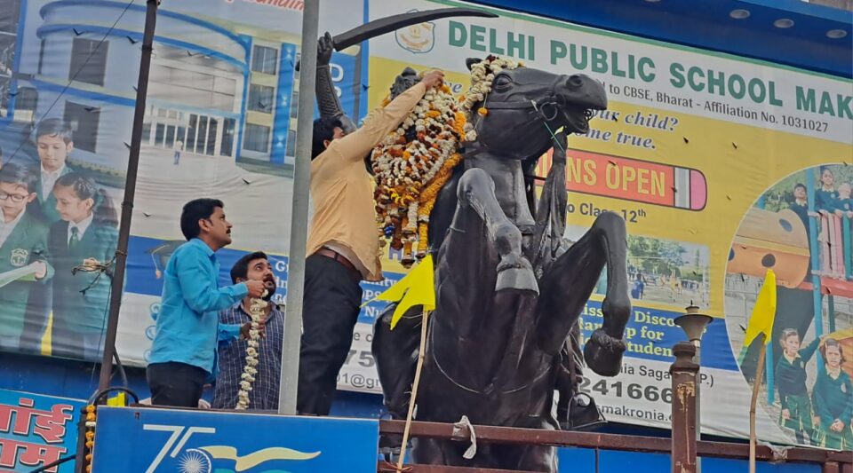 सागर / वीरांगना अवंती बाई लोधी की 165 वीं पुण्यतिथि ( बलिदान दिवस ) पर ब्लॉक कांग्रेस कमेटी मकरोनिया के तत्वाधान में पुण्य स्मरण कार्यक्रम का आयोजन पूरी श्रद्धा और गरिमा के साथ किया गया।जहां कांग्रेसजनों ने मकरोनिया चौराहे स्थित वीरांगना रानी अवंतीबाई की प्रतिमा पर माल्यार्पण कर उनका पुण्य स्मरण किया। ब्लॉक कांग्रेस अध्यक्ष देवेंद्र कुर्मी,वरिष्ठ कांग्रेस नेता आर.आर पाराशर, अशरफ खान,कमल जैन आदि कांग्रेसजनों ने वीरांगना अवंती बाई की देश के प्रति शहादत और संघर्ष पर प्रकाश डाला। कार्यक्रम में मुख्य रूप से एम्पायर मासाब, मुल्ले चौधरी,निर्वाण सिंह,कमल मासाब, प्रेम लाल,रोहित वर्मा,धर्मेंद्र रजक,शंकर दाऊ, कपूर अहिरवार, मोतीलाल पटेल, हरप्रसाद पटेल, जयदीप तिवारी,अक्षत कोठारी,सोनू शुक्ला, दीपक कुर्मी, सुनील लारिया, सुरेश यादव, प्रेम अहिरवार, कल्याण अहिरवार आदि मौजूद थे।