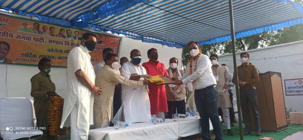 बिजावर(कपिल खरे)- विश्वव्यापी कोरोना महामारी के संकट में आम जनजीवन की सुरक्षा और जन सेवा में कार्य करने वाले कोरोना वारियर्ष का भाजपा मंडल बिजावर द्वारा सम्मान किया गया। इस दौरान सभी कोरोना योद्धाओं को प्रशस्ति पत्र के साथ सैनिटाइजर, मास्क और त्रिकूट चूर्ण की किट भेंट की गई। जनपद पंचायत प्रांगण में भाजपा मंडल के तत्वावधान में कोरोना योद्धाओं का सम्मान कार्यक्रम आयोजित किया गया। जिसमें कोरोना काल में जन सेवा का कार्य करने वाले विभिन्न विभागों, पत्रकारों समाजसेवियों, चिकित्सकों और मैदानी क्षेत्र में कार्य करने वाले कोरोना योद्धाओं का सम्मान किया गया। इसके अलावा नगर परिषद कार्यालय में भी नगर परिषद कर्मचारियों और सफाई कर्मियों का उत्साह बढ़ाते हुए प्रशस्ति पत्र दिए गए। कार्यक्रम में टीकमगढ़ सांसद वीरेंद्र कुमार ने कहा कि दूसरों की जान बचाने के लिए अपनी जान की परवाह किए बिना जो लोग कार्य कर रहे हैं वह ईश्वर का रूप हैं। इन्हीं की मेहनत और लगन से वर्तमान की विपरीत परिस्थिति से निकलने में हम सक्षम हो रहे हैं। इस दौरान भाजपा जिला अध्यक्ष मलखान सिंह ने सभी कोरोना योद्धाओं और विभागीय अधिकारियों कर्मचारियों के कार्यों की सराहना की। इस दौरान पूर्व विधायक पुष्पेंद्र नाथ पाठक ने भी संबोधित किया।