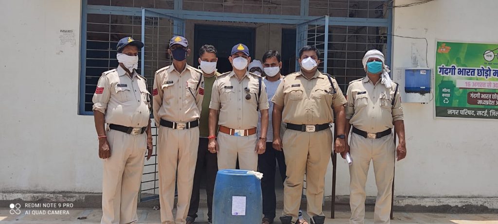 छतरपुर(मोहम्मद साजिद)-दिनांक 29/05/21 को मुखबिर की सूचना पर नदगांय तिगड्डा के पास नसीम के ढाबा के सामने सटई बिजाबर आम रोड से आरोपीगण अंकित पिता हीरालाल अनुरागी उम्र 19 साल नि. बार्ड नं. 8 सटई एवं सोमचन्द्र पिता हरीराम कुशबाहा उम्र 26 साल नि. बार्ड नं. 10 सटई के कब्जे से मोटर साइकिल हीरो एच.एफ.डीलक्स सहित 60 लीटर महुआ की कच्ची अबैध शराब जप्त कर आरोपीगणों को न्यायालय पेश किया गया हैं। उपरोक्त सम्पूर्ण कार्यवाही में थाना प्रभारी सटई उनि. प्रदीप सराफ , प्रआऱ. 532 जीत सिहं , कार्य.प्रआर. 990 सुहैल हाशमी ,कार्य.प्रआर. 548 हरनारायण बिश्बकर्मा , आर.65 कृष्ण प्रताप सिहं , आर. 195 दानिश अली, आर. 115 अरबिन्द्र राबत , आर. 402 महेन्द्र साहू की महत्बपूर्ण भूमिका रही ।