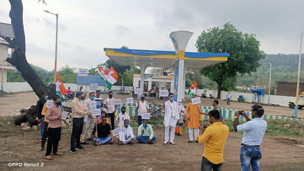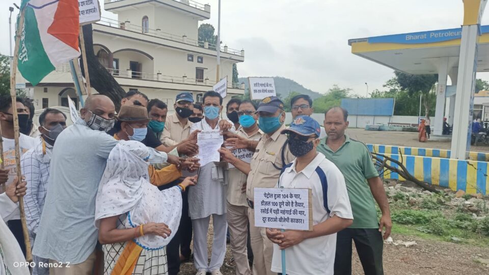 बरगी:- पेट्रोलियम पदार्थों की मूल्यवृद्धि को लेकर आज पूरे मध्यप्रदेश में कांग्रेस द्वारा जगह जगह पेट्रोल पंप एवं गैस एजेंसियों के सामने मूल्य वृद्धि को लेकर प्रदर्शन किया बरगी में भी मध्य प्रदेश कांग्रेस कमेटी के दिशा निर्देश जिला कांग्रेस कमेटी के आह्वान एवं ब्लॉक कांग्रेस कमेटी एवं युवक कांग्रेस बरगीके तत्वाधान में डीजल पेट्रोल के बढ़ते हुए दामों को कम करने के लिए सांकेतिक प्रदर्शन bargi बरगी में जैन पैट्रोल पंप के सामने किया गया जिसमें कांग्रेस के कार्यकर्ता नारेबाजी करते हुए तख्तियां लिए हुए थे एवं मूल्य वृद्धि वापस लेने की मांग कर रहे थे लगातार बढ़ाए गए पेट्रोल एवं डीजल के दामों से महंगाई अपने चरम पर है जिसको लेकर आम जनता काफी परेशान है किंतु केंद्र शासन द्वारा लगातार पेट्रोलियम पदार्थों पर वृद्धि की जा रही है जिसका सीधा सीधा असर रोजमर्रा की चीजों पर सब्जियों पर खाद्य सामग्रियों पर खाद्य तेलों पर देखा जा रहा है जिसको लेकर मध्य प्रदेश कांग्रेश अब आक्रामक रूप अपना चुकी है और पेट्रोलियम पदार्थों की मूल्यवृद्धि को लेकर लगातार धरना प्रदर्शन करने में लगी हुई है इसी को लेकर बरगी में भी पेट्रोल पंप एवं गैस एजेंसी पर सांकेतिक प्रदर्शन कर थाना प्रभारी को ज्ञापन सौंपा गया इस प्रदर्शन पर ब्लॉक कांग्रेस कमेटी बरगी अध्यक्ष दयानंद गिरी,बमबम तिवारी,शीतल गिरी,विकास खन्ना,सुखलाल यादव,संतोष चौकसे, रघु चौधरी,महेंद्र राजपूत, गोविंद पटेल आदि उपस्थित थे