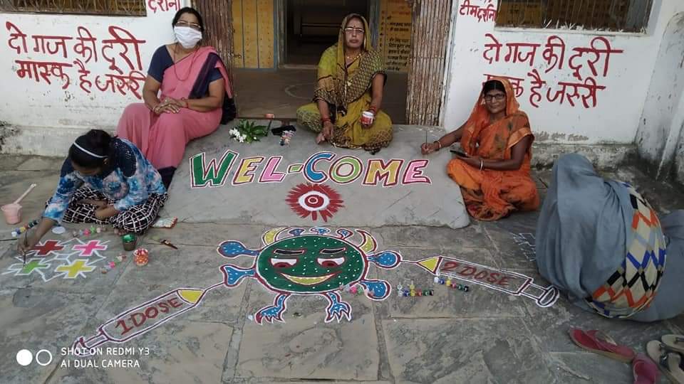 इसी क्रम में आज नौगांव क्षेत्र की आंगनबाड़ी कार्यकर्ताओं ने महाराजपुर सहित ग्राम करारागंज, बिलहरी एवं अन्य स्थानों के टीकाकरण केंद्र में पहुंचकर आकर्षक रंगोली बनाई। इससे लोगों को टीका लगवाने की प्रेरणा मिलेगी। उल्लेखनीय है कि जिला प्रशासन सहित जनप्रतिनिधियों, स्वयंसेवी संगठनों के प्रतिनिधि, समाजसेवी और मीडियाकर्मियों ने महाअभियान की सफलता और लोगों की भागीदारी का संकल्प लिया है।