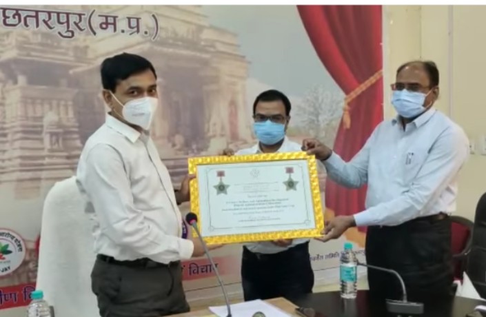 छतरपुर जिले को वर्ष 2020-21 में कृषि क्षेत्र के विकास के लिए सेमी फाइनल्स ऑफ स्कॉच अवार्ड इंडिया पुरुस्कार से नवाजा गया है। स्कॉच ग्रुप के चेयरमेन समीर कोचर द्वारा कृषि विकास एवं कल्याण विभाग जिला छतरपुर को यह सम्मान दिया गया है। उल्लेखनीय है कि इस अवधि में किसानों को अधिक उत्पादन देने वाले प्रमाणित गेहूं एवं चनें के बीज वितरित किए गए। जिससे छतरपुर जिले की प्रति हैक्टेयर औसत उत्पादकता 36 क्विंटल तक बढ़ी।