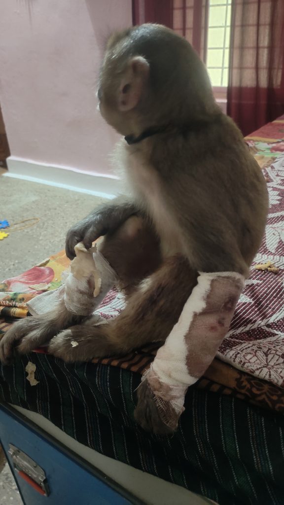 प्राप्त जानकारी के अनुसार बीती रात एक बंदर घायल अवस्था मे बाज़ार में घूम रहा था जिसका एक हाथ एवं एक पैर में लगभग 6 इंच लंबे घाव थे लोगों के बताए अनुसार शायद बंदर को किसी जानवर ने घायल किया था जिससे उसको गंभीर चोटें आई और खून से लथपथ हो कर सड़को पर घूम रहा था।