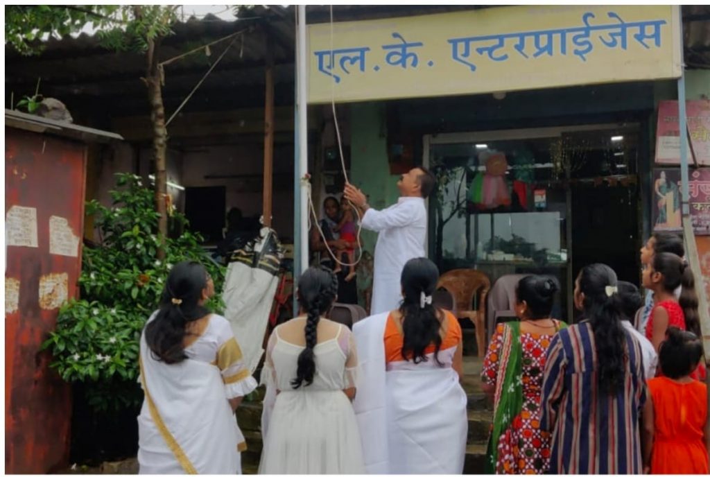 मोहोने : भारत देशाला स्वातंत्र्य मिळून ७५ वर्षे पूर्ण झाले असून या अमृतमहोत्सवी स्वातंत्र्यदिनानिमित्त सावित्रीबाई महिला मंडळ संस्थेतर्फे गाळेगाव तरे मार्केट येथे मोठ्या उत्साहात ध्वजारोहनाचा कार्यक्रम संपन्न झाला. या प्रसंगी महाराष्ट्र प्रदेश महिला काँग्रेस कमिटीच्या सचिव तथा सावित्रीबाई फुले मंडळ अध्यक्षा लता सिद्धार्थ जाधव, मोहोने ब्लॉक अध्यक्ष काँग्रेस राजेश वाघमारे, मोहोने महिला ब्लॉक अध्यक्षा काँग्रेस वैशाली किशोर वाघ, शारदा दिलीप शिंदे, मंजू यादव, भारती घोडके, इंदूबाई नरवडे यांसह मोठ्या संख्येने महिला उपस्थित होत्या. यावेळी कार्यक्रमास उपस्थित असलेले सिद्धार्थ जाधव यांच्या हस्ते ध्वजारोहण करण्यात आले. आज सकाळपासून पावसाचे आगमन झाले असले तरी कार्यकर्त्यांचा उत्साह तसूभरही कमी झाले आला नव्हता. भर पावसात भिजून ध्वजारोहणाचा कार्यक्रम संपन्न केला. यावेळी किशोर वाघ, सचिन ढिवर, रोहित कदम, उमेश जयकर तसेच सदर कार्यक्रमास संजय शिंदे, सचिन जाधव यांचे विशेष सहकार्य लाभले।
