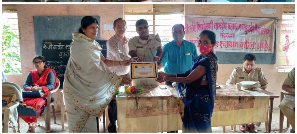 सर्व मान्यवरांचा विद्यालयाच्या वतीने सत्कार करण्यात आला.व या कार्यक्रमाचे औचित्य साधून कोरोना काळात ज्या महिलांनी विशेष मेहनत घेतली त्या दोन महिलांना हिरकणी पुरस्काराने मान्यवरांच्या शुभहस्ते गौरविण्यात आले.यावेळी मान्यवरांनी आपले मनोगत व्यक्त केले व मान्यवरांच्या हस्ते विद्यार्थ्यांना वह्यांचे व गावातील महिलांना साड्यांचे वाटप करण्यात आले. आर एस पी युनिट कल्याण/ ठाणे यांनी आत्तापर्यंत महाराष्ट्रातील १८ जिल्ह्यात ४०,००० गरीब गरजु पर्यंत मदत पोचवली आहे.मात्र आम्ही फक्त निमित्त आहोत.ज्यांच्या मुळे ही मदत पोहचली ते खरे देवदूत आपल्या समोर बसले आहेत.त्यामध्ये विशेष उल्लेख करायचा झाला तर श्री स्वामी नारायण ट्रस्ट कल्याणचे अध्यक्ष डॉ.श्री.दिनेश भाई ठक्कर, संपादक श्री किशोर पाटील, डॉ.श्री.सोन्या पाटील,समाजसेवक श्री.रामचंद्र देसले.श्री.श्रीधर पाटील, डॉ.किशोर आमोदकर, (परीवर्धे,),डॉ. तुषार सनंसे यांचा नामोल्लेख करावा लागेल.आम्ही