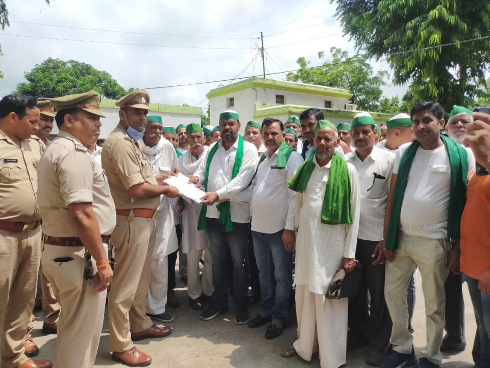स्योहारा : हरियाणा सरकार द्वारा किसानों पर कृत्य लाठीचार्ज को लेकर किसानों में आक्रोश ब्लॉक अध्यक्ष गजेंद्र सिंह टिकैत के नेतृत्व में भाकियू कार्यकर्ता सहकारी समिति में इकट्ठा होकर नारेबाजी करते हुए थाने पहुंचकर महामहिम राष्ट्रपति के नाम ज्ञापन थाना अध्यक्ष को सौंपा किसान नेता गजेंद्र सिंह टिकैत ने कहा दिल्ली बॉर्डर पर देश का किसान 9 महीने से शांतिपूर्ण ढंग से कृषि कानूनों के खिलाफ आंदोलन कर रहे हैं लेकिन हरियाणा सरकार बार-बार किसानों को उकसाने के लिए असंवैधानिक तरीके से लाठीचार्ज कराया जा रहा है जिसमें अधिकारियों द्वारा किसानों को तालिबानी भाषा में किसानों के सिर फोड़ने की बात कह रहे हैं लाठीचार्ज में बड़ी संख्या में किसान घायल हुए एक किसान की मौत हो गई यह घटना मानवता को तार-तार करते हुए देश के लोकतंत्र को खत्म करने के उद्देश्य से हरियाणा सरकार कदम उठा रही है ।